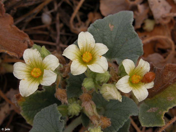 Planta perenne de hábito postrado, reptante, que levanta 20-30 cm del suelo y extiende tallos de hasta 1,5 m, carnosos, cubierto de pelos híspidos. Hojas ovado-triangulares, sagitadas, algo crasas, de largos peciolos, híspidas por el haz, tomentosas por el enbes, de margen ondulado y ligeramente más claro que la parte central del limbo. Flores campanuladas, de 2,5 cm de diámetro, dispuestas en las axilas de las hojas, solitarias las masculinas y en grupos las femeninas, pentámeras, con pétalos de color blanco crema, algo verdosos, mucronados. Fruto de hasta 7 cm, de oblongo a elipsoidal, híspido, con pedúnculo insertado en su parte superior, bruscamente curvado, que lo sostiene elevado y sobresaliente por encima de las hojas.