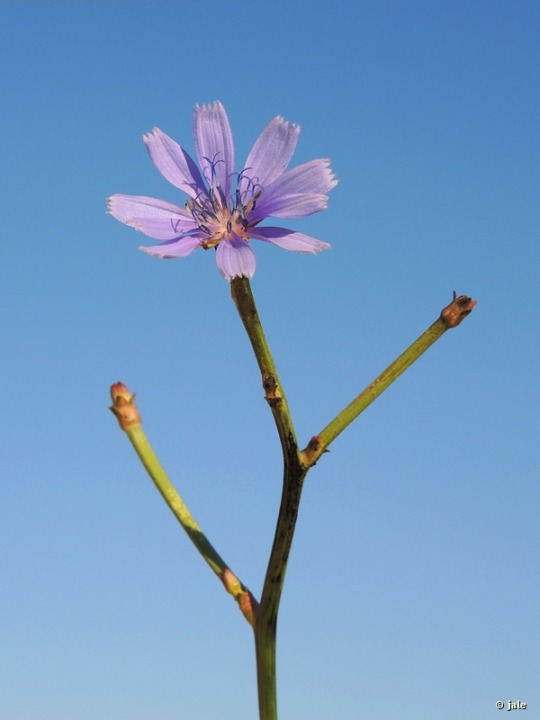 Hierba perenne, de raíz larga y engrosada, napiforme. Tallos erectos, de 10 cm a 1 m de altura, glabra o con pelos hirtos dispersos por toda la planta. Hojas alternas, muy variables, rosuladas, runcinadas, pinnatífidas, pinnatipartidas, dentadas, etc. Capítulos sentados, sobre los tallos o en las axilas, también cortamente pedunculados, con flores liguladas azules. Fruto de tipo aquenio, de hasta 3 mm, con vilano formado por escamas cortas.