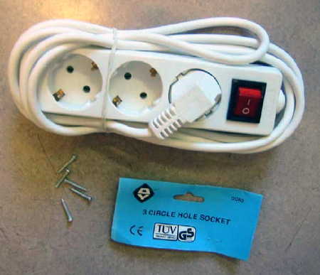 Presenta riesgo de descarga eléctrica. El enchufe y los zócalos tienen contacto de tierra, pero el ladrón no tiene conductor de tierra y es sólo un cable compuesto de dos hilos. No cumplen la Directiva de Bajo Voltaje y las normas comunitarias.