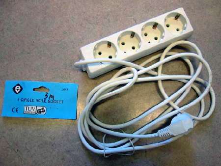 Presenta riesgo de descarga eléctrica. El enchufe y los zócalos tienen contacto de tierra, pero el ladrón no tiene conductor de tierra y es sólo un cable compuesto de dos hilos. No se atienen a la Directiva de Bajo Voltaje y las normas comunitarias.