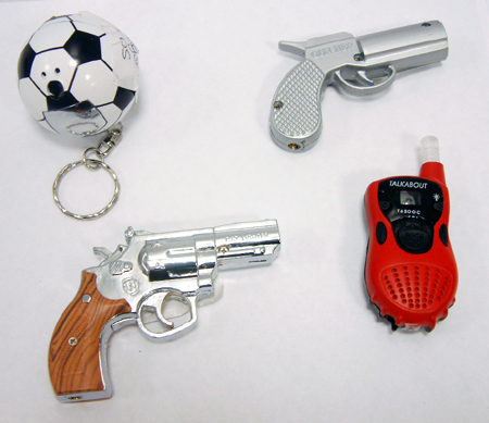 Adoptan las formas de un balón de fútbol, de un teléfono móvil y de dos pistolas.