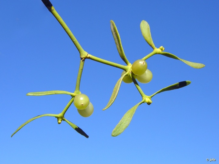 Planta mágica para algunas culturas, como la Celta, que le atribuye aplicaciones protectoras frente a la maldad, enfermedades, etc. También es símbolo de suerte, paz, buen augurio y fertilidad, por lo que en algunos paises de Europa y América está muy arraigado su uso como adorno navideño, colgándose en pequeños ramilletes decorados con lazos y otros complementos. La tradición invita a dar un beso a quien se coloque bajo el trozo de muérdago, que no puede ser rechazado.