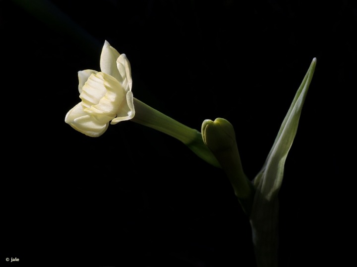 Hierba bulbosa, perenne, de órgano subterráneo casi redondo, enterrado a 5-10 cm de profundidad, provisto de varias capas de túnicas de color castaño, oscuras. Hojas largas, lineares, de hasta 0,5 x 30 cm, no retorcidas y con extremo romo, de color verde oscuro. Tallos o escapos glabros, sin hojas, aplanados, algo céreos, rematados en bráctea o espata única, papirácea, que protege previamente a las 2-10 flores, olorosas, pecioladas, ligeramente amarillentas o color crema en la antesis. Corola con tubo, seis piezas blancas y corona central.