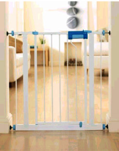 Riesgo de lesión. Las instrucciones indican el uso de los dispositivos de fijación de la barrera sólo para la fijación permanente; sin embargo, sin tales dispositivos la barrera no ofrece la suficiente protección. Las piezas pequeñas pueden despegarse y ser tragados por los niños, que también podrían dañar su cabeza o su tórax. El artículo no cumple la normativa europea.