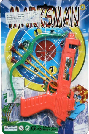 Presenta riesgo para la salud. Las tapas protectoras de las flechas tienen poca resistencia y pueden despegarse fácilmente. El producto no cumple la Directiva de Juguetes y la normativa comunitaria.