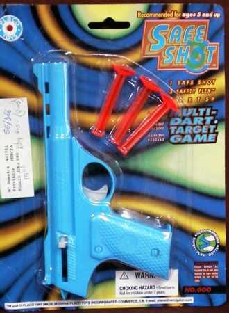 Presenta riesgo de lesión. Los proyectiles exceden el límite autorizado de energía cinética. Además, la longitud de los dardos es menor de 57 mm, por lo que hay peligro de que sean tragados. El juguete no se atiene a la normativa de juguetes de la U.E.
