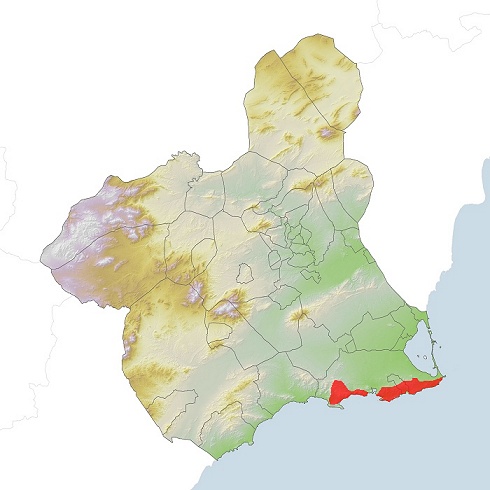 Restringida principalmente a la franja litoral oriental, donde puede observarse en diversos enclaves de las sierras de Cartagena. Un lugar recomendado es Atamaría, particularmente diverso en orquídeas. Se accede a la zona por la carretera Los Belones - Portman, poco despues de pasar el Campo de Golf La Manga Club.