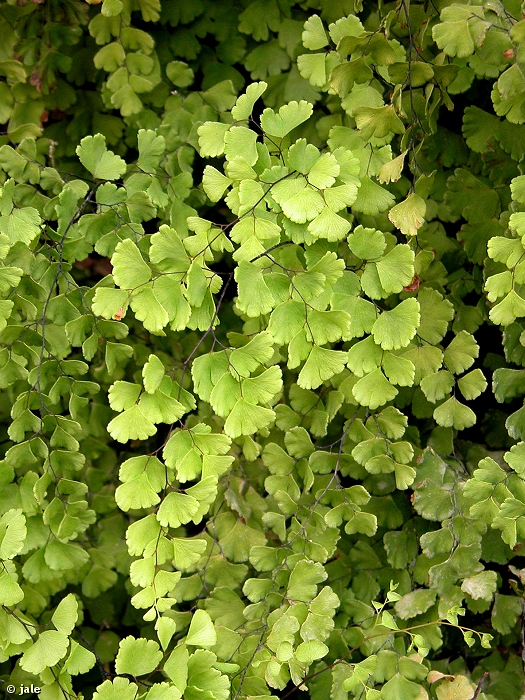 Helecho rizomatoso, de frondes colgantes. Láminas ovadas, varias veces divididas. Divisiones con forma de abanico, 'pecioladas', glabras, de margen lobulado irregularmente en su extremo. Pecíolo oscuro, generalmente negro, de longitud similar a la lámina. Soros marginales, protegidos por pseudoindusio.