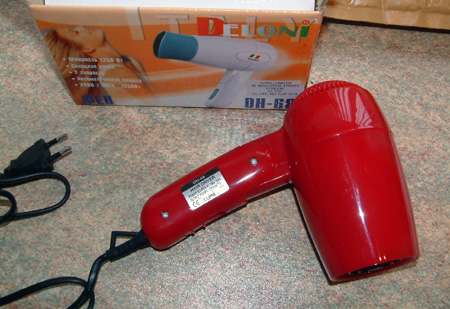 El riesgo es de descarga eléctrica. La sección transversal del cable de la fuente es escaso; cuando la protección de recalentamiento se pone en marcha, puede producir partículas pequeñas de metal fundido y expulsarlas hacia el pelo. El secador no se atiene a la Directiva de Bajo Voltaje y las normas comunitarias.