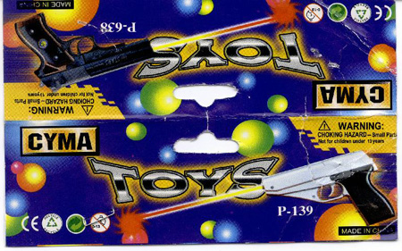 Presenta riesgo de lesión. La fuerza cinética de los proyectiles que la acompañan es excesiva. La pistola no cumple la Directiva de Juguetes y la normativa comunitaria.