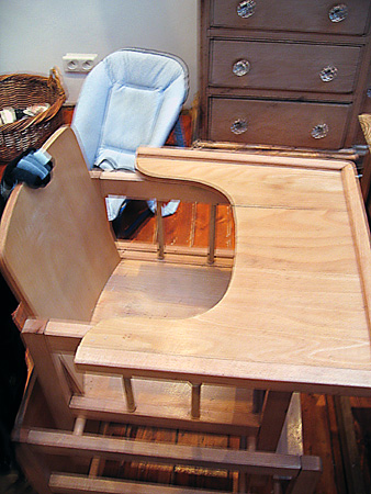 La silla no es segura, ya que tiene poca estabilidad y los bordes no están bien redondeados; posible presencia de astillas; espacio inflexible en la proximidad del asiento. La silla no cumple la normativa de seguridad de la U.E.