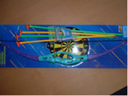 Presenta riesgo de lesión. Energía cinética excesiva; además, los casquillos pueden ser separados fácilmente de los protectores. No se atiene a la Directiva de juguetes y las normas comunitarias.