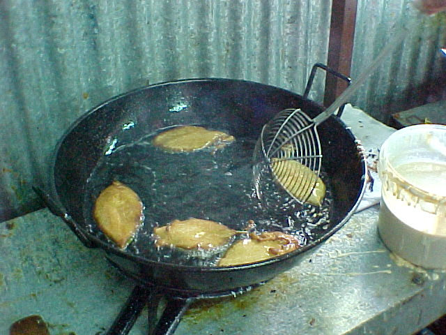Con el aceite caliente se van colocando uno a uno los buñuelos que forman la hoja rebozada en el interior de la sartén. Se deben voltear con cuidado para no desprender la masa de la hoja o bien poner aceite suficiente para que se doren por ambas caras.